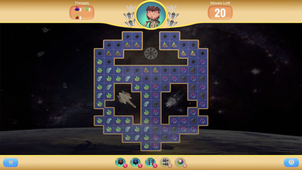 Match asteroids, crystals, gems and more: earn coins, break blocks, bypass shields…